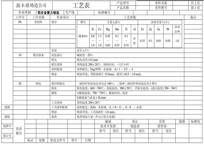 蘇州重力鑄造工藝表二